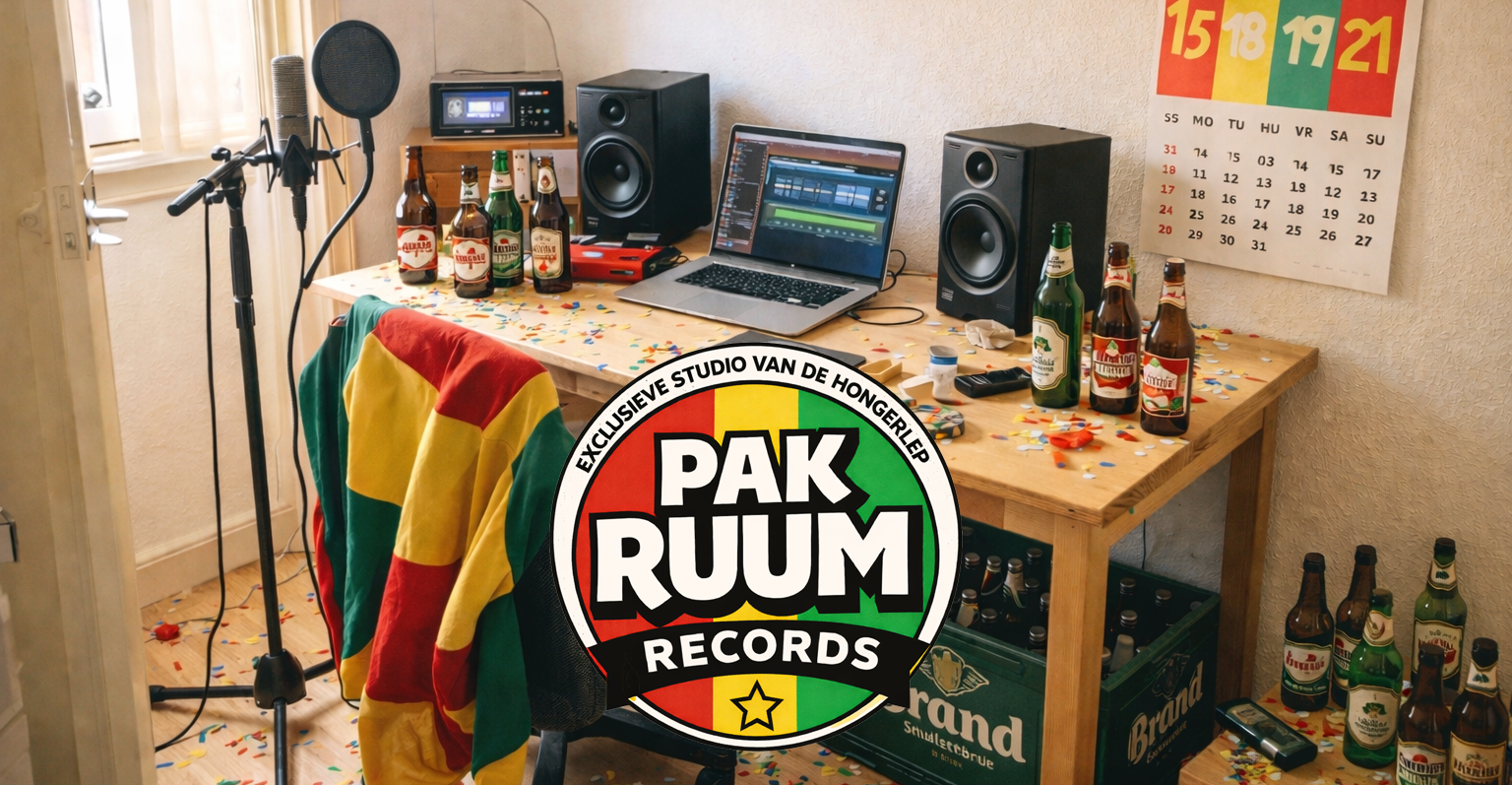 Pak Ruum Records is de exclusieve studio van De Hongerlep. Ontstaan aan de keukentafel. Gebleven omdat het werkt. Hier maken we muziek zonder plan, zonder druk. Gewoon opnemen, terugluisteren en besluiten of het leuk genoeg is om te delen. Soms strak. Soms fout. Altijd van ons. Tot nu toe staan er twee nummers online. Meer komt alleen als het klopt. Geen schema. Geen beloftes.